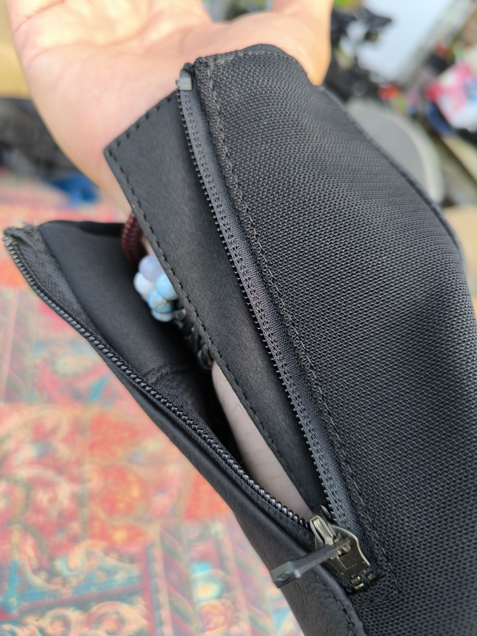 Au niveau des manches, un zip de fermeture est présent. L’intérieur du bas de la manche est aussi recouvert de néoprène et cela permet aux gants de rester en place même si la manchette n’est pas longue. C’est un détail intéressant et cela s’est montré fort pratique à l’usage.