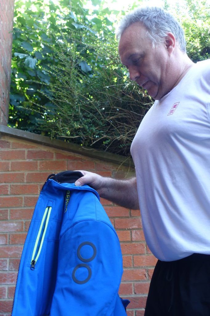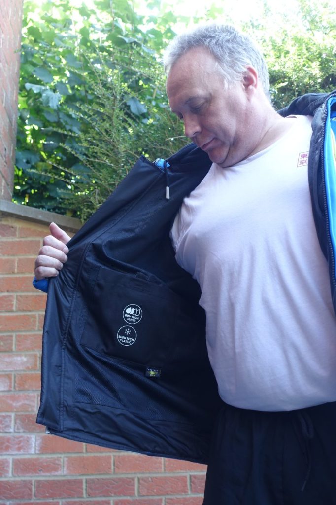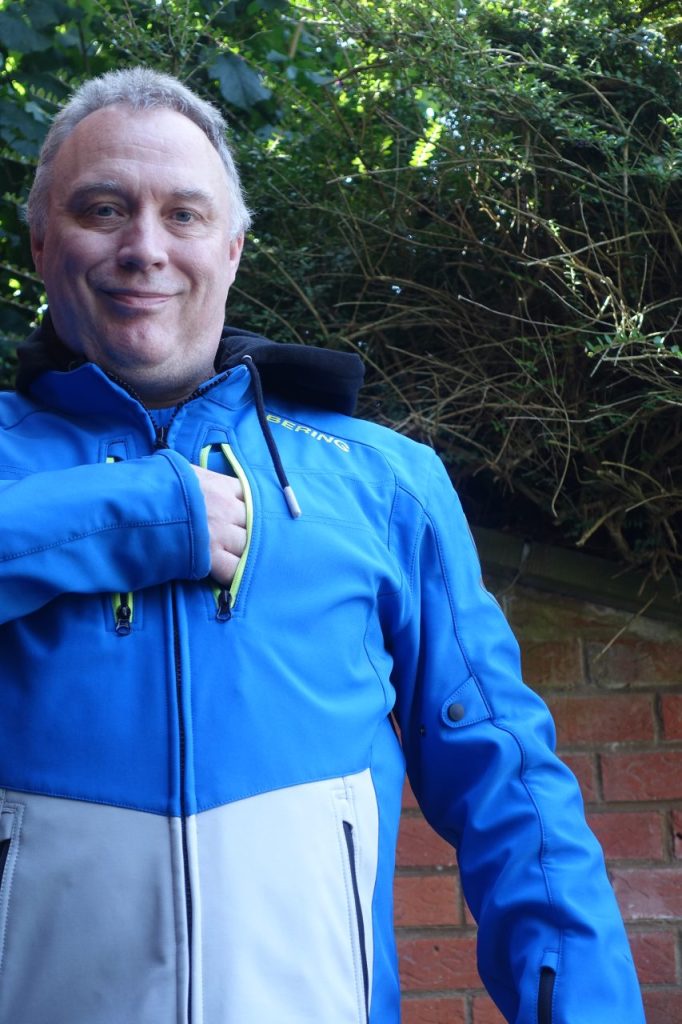 Ce blouson est majoritairement en softshell, souple et léger mais il aussi équipé d’une membrane BW-Tech pour le rendre imperméable à la pluie et au vent. Ce que je pensais être deux aérations sous les tirettes jaunes de la poitrine sont en fait des poches… Quand on ne sait pas lire… Oui, donc pas de ventilation pour l’été et forcément avec les efforts à piloter cette petite sportive et le thermomètre qui grimpe, j’ai eu bien chaud pour les prises de vue. Si elles sont vides, vous pouvez toujours les ouvrir pour laisser entrer un peu d’air mais ça ne vaut pas des panneaux de mesh bien entendu. J’avais quand-même retiré le gilet thermique, heureusement.