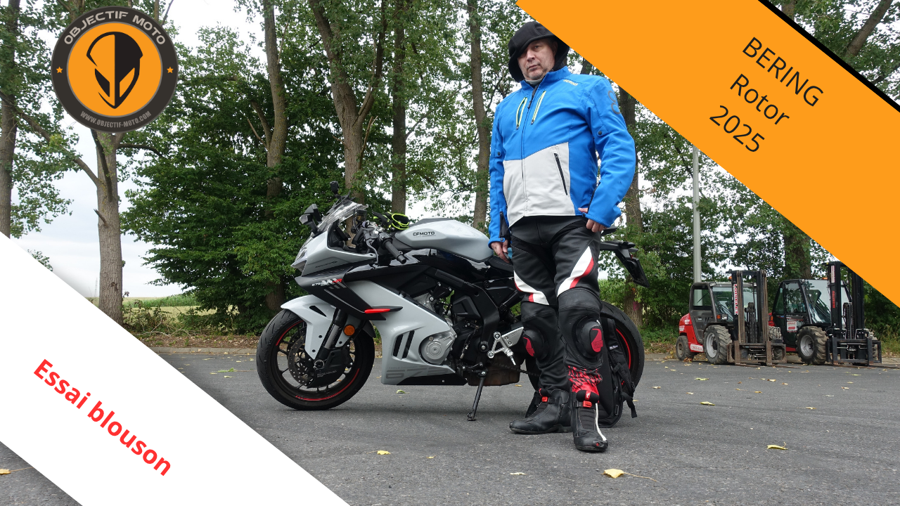 Parfois, on se trompe ! J’avoue qu’en regardant le catalogue Bering en début de saison et en préparant nos propositions d’essais, ce blouson Rotor avec ses couleurs plutôt flashys et je me disais que ça serait nickel pour l’été pour rouler sur des roadsters. Et comme pour l’essai de cette CF-Moto, je trouvais que ça matchait bien que le soleil était encore présent, je l’ai pris pour les photos et la vidéo. Mauvaise idée parce que ce Rotor n’est pas un blouson été.