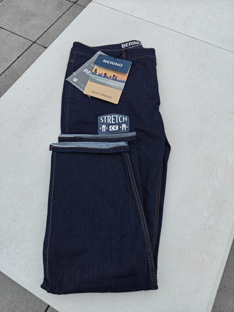 Dans les petits points d’attention à savoir lors de l’achat, il faut être conscient que ce jeans n’est ni étanche ni même imperméable. Il n’est nullement ventilé et en été comme vécu cette année, les fortes chaleurs impliqueront de transpirer mais uniquement en usage hors-moto, lors de visites pédestres par exemple. Sur ce point-là, il ne diffère vraiment pas d’un jeans classique. Malgré la matière Hyperstretch Cordura, il se montre un peu plus lourd qu’un jeans classique mais surtout beaucoup plus protecteur. Le patron de taille utilisé par Bering est de type européen mais je ne peux que vous conseiller fortement d’aller l’essayer chez un revendeur de la marque afin de trouver la Coupe et le modèle qui vous conviennent le mieux. C’est seulement de cette façon que vous pourrez accueillir ce nouveau jeans moto Bering Trust de la meilleure de façon et de profiter pleinement de ses qualités. Disponible de la taille Small jusqu’au 4XL, il existe aussi en version Femme à la coupe adaptée à la morphologie de ces dernières. La version King Size et Queen Size permettront vraiment à quasiment tous les motards et motardes de trouver leur bonheur et de pouvoir s’équiper d’un jeans Bering Trust. D’autant plus que le prix de vente annoncé et conseillé par Bering de 169€ se révèle être une bonne surprise et rend ce jeans trust encore plus attrayant, voire indispensable dans votre garde-robe de motard. Destiné à un usage principalement urbain, il vous sera loisible de l’utiliser ce jeans Bering Trust pour d’autres aventures à moto. Son confort de port est son plus gros avantage alors que la sécurité offerte par les matériaux utilisés vous protégera des aléas de la chute. Alors si le look et la sécurité se rejoignent, le confort viens agrémenter le tout et ce jeans Bering Trust est un must have dans la liste de votre équipement moto. C’est bien simple, dès qu’il revient du lavage, le jeans Bering Trust de cet essai reprend sa place en haut de la pile de mes jeans moto !