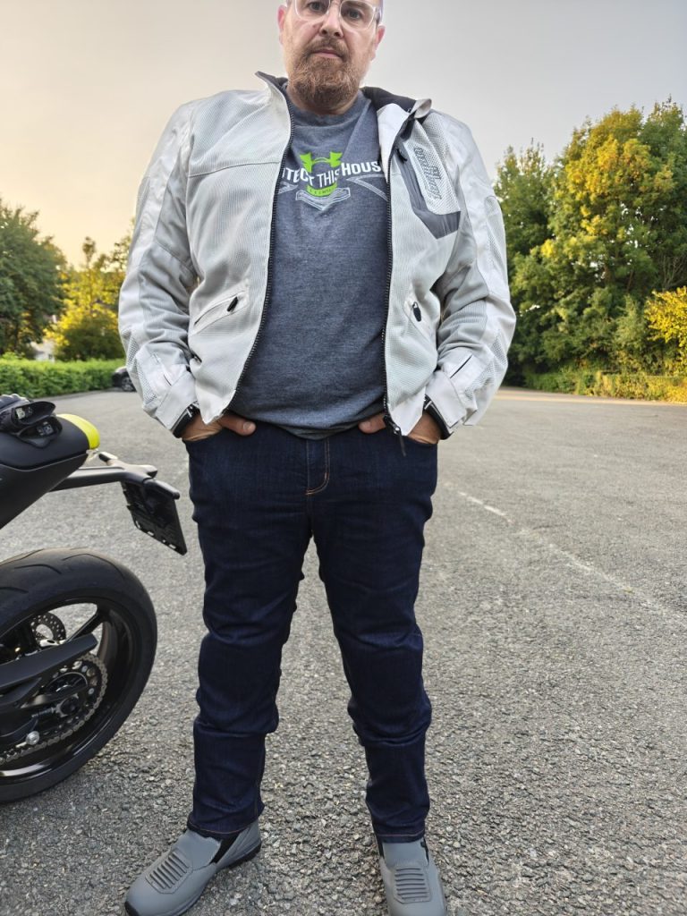 Nous sommes un fervent utilisateur de jeans moto. Qu’il s’agisse de navettes quotidiennes de journée moto avec visite pédestre ou de longs week-ends touristique, un jeans moto fait partie de notre équipement préféré pour ces usages. Dès que vous l’enfilez et contrairement à d’autres jeans de marques concurrentes, le jeans Bering trust est confortable. Cette fameuse matière Cordura Hyperstretch est une grande avancée au niveau du confort, elle combine en même temps confort tout autant que sécurité. Vous vivrez cette sensation de sécurité, d’être revêtu d’un équipement protecteur tout en vous assurant une souplesse et cette fameuse liberté de mouvement que les motards apprécient tout autant. Notre coupe Straight nous a permis de le porter même au-dessus de nos bottes mi-hautes de type Enduro. Il passe aussi facilement au-dessus de nos bottes Touring comme de nos baskets moto. Il est clair que la Coupe slim fit ne sera pas aussi évidente en fonction des chaussures choisies. Le choix est vôtre, tenez en compte lors de l’achat !