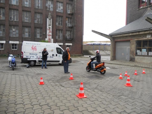 – Atelier pratiques sur scooters (premier tour de roue dans un espace sécurisé) ou sur simulateur moto (selon la place disponible) ;