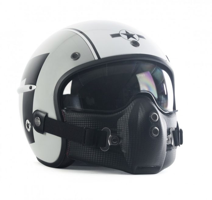 L’inspiration vient clairement des masques des pilotes de chasse et sa finition en carbone ajoute une touche classe en plus.