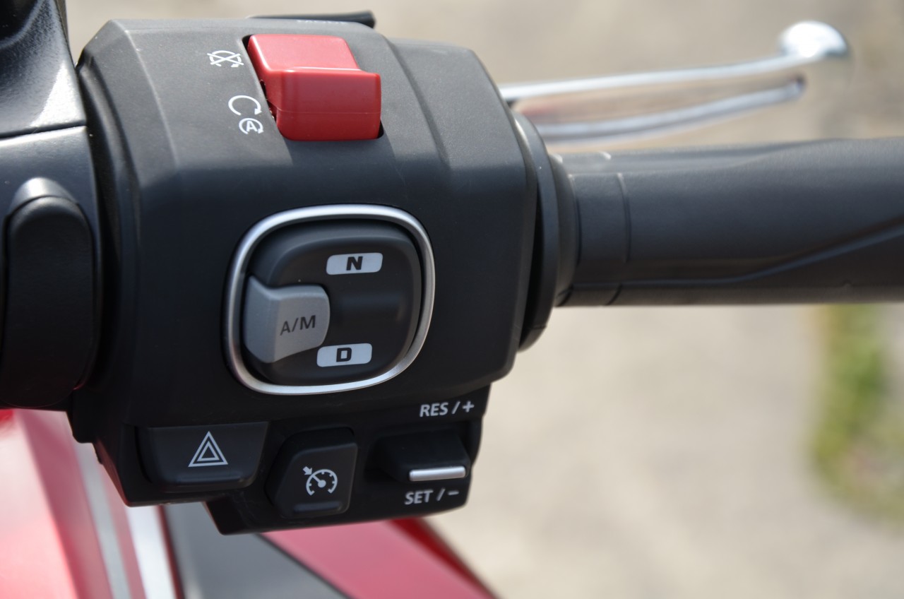 Les « claquements » désagréables lors du passage des vitesses sont moins audibles sur ce DCT de 3ème génération qui se décline en trois modes : le mode « MT » qui donne le contrôle au conducteur en lui permettant de changer de rapport manuellement à l’aide des boutons situés sur le guidon…le plus amusant. Le mode automatique « D » qui assure une consommation de carburant optimale et s’adaptera aussi bien à une conduite en ville, que sur route sinueuse…le plus reposant. Le mode automatique « S » offre des performances plus sportives en se rapprochant de la zone rouge avant de changer de rapport, pour une conduite plus engagée…le plus élaboré. Par ailleurs, il rétrograde plus rapidement pour optimiser le frein moteur. Autre fonctionnalité innovante : la modération des rapports de transmission. Ils se rapprochent à faible vitesse pour des changements fluides, mais s’espacent à vitesse élevée pour réduire le régime moteur. Autrement dit, les passages de rapports s’adaptent à votre conduite. Dans la configuration la plus dynamique (Sport et MT), la Gold devient une bombe qui n’a rien à envier à une K1600 par exemple.