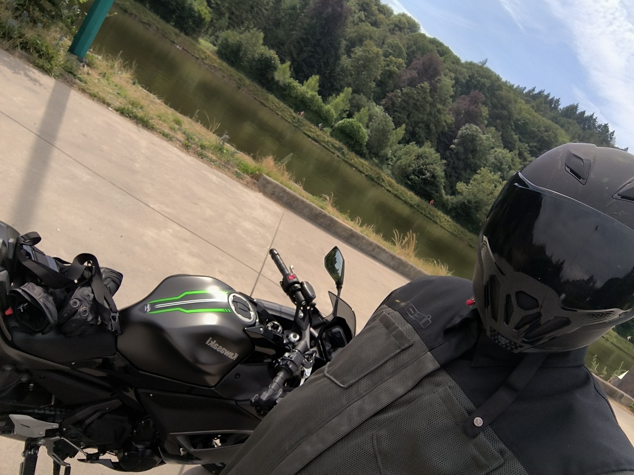 Une fois en route, ce qui surprend surtout, c’est la facilité à la piloter. Notre Ninja 650 (oui, on sait, ce n’est pas la notre) se balance d’un virage à l’autre sans aucune difficulté. Que ce soit en ville ou son poids plume et son guidon plus haut permet de manoeuvrer sans forcer ou dans les petits virages de la Molignée qui mettent en avant une bonne partie cycle et une tenue de route à la hauteur. Bien entendu, je n’ai pas poussé la moto jusqu’à poser les pose-pieds au sol ni à mettre à mal les pneumatiques mais plutôt comme quelqu’un qui veut une moto sportive et qui veut apprendre en s’amusant mais avec un jouet rassurant. Il ne faut pas le prendre au premier degré non plus, oui, la Ninja est joueuse mais elle est surtout bien partout, sans excès, utilisable au quotidien comme en balade.