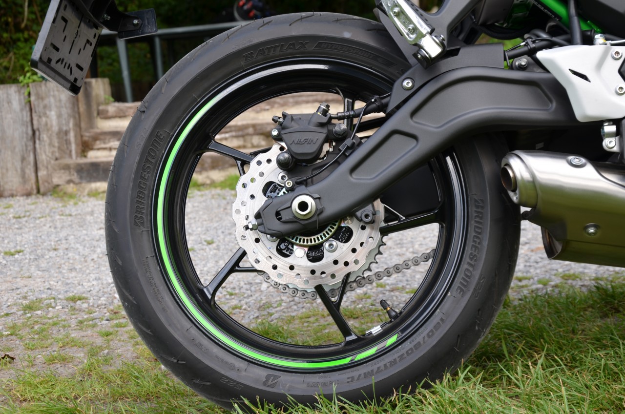 L’évolution technologique majeure est l’apparition du KTCR (Kawasaki Traction Control) à deux niveaux et désactivable. La tête de fourche est davantage profilée afin d’accentuer son caractère agressif. L’éclairage et des clignoteurs LED, le feu arrière en forme de Z et un écran TFT de 4,3 pouces auquel il est possible d’associer l’application Rideology via un smartphone complètent le tableau.