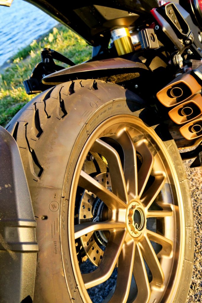 En termes de longévité, Michelin annonce de 6000 à 10000km avec un train de Road 5. Promesse largement tenue, et notre Italienne au couple généreux s’approchera sûrement des dix mille bornes alléguées et pourrait même, d’après nos mesures, les dépasser pour rendre l’âme vers 12000km. Un chiffre remarquable à tempérer par le fait que nos parcours font (malheureusement) la part belle à l’autoroute…
