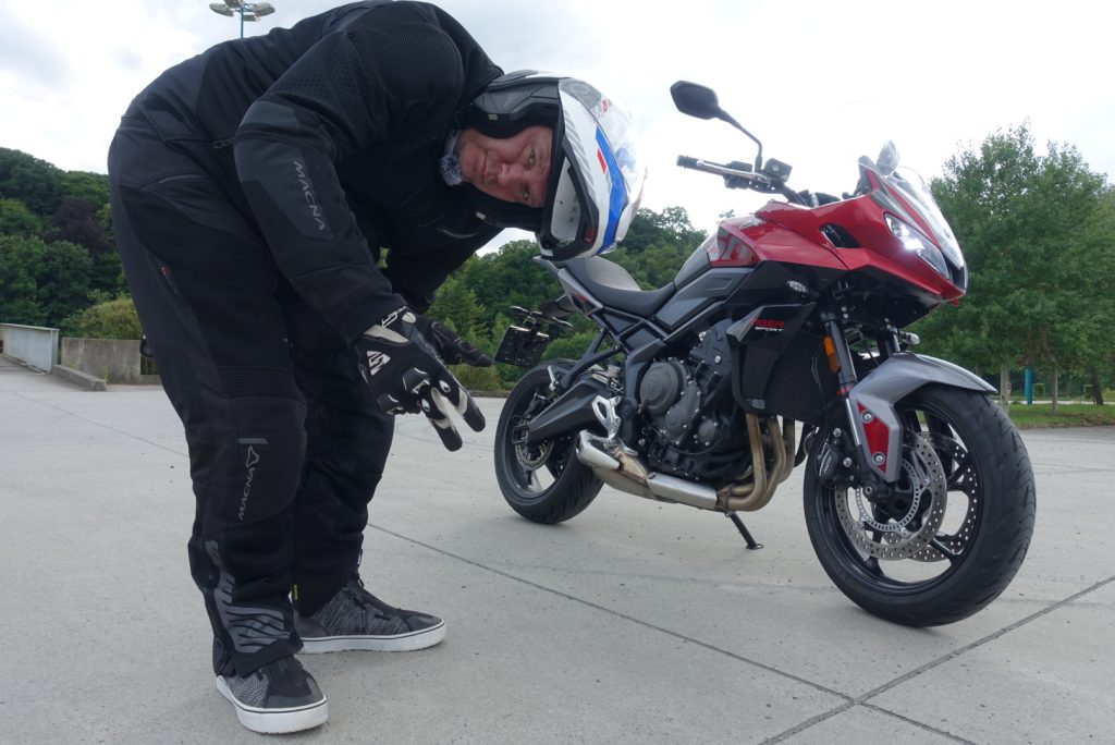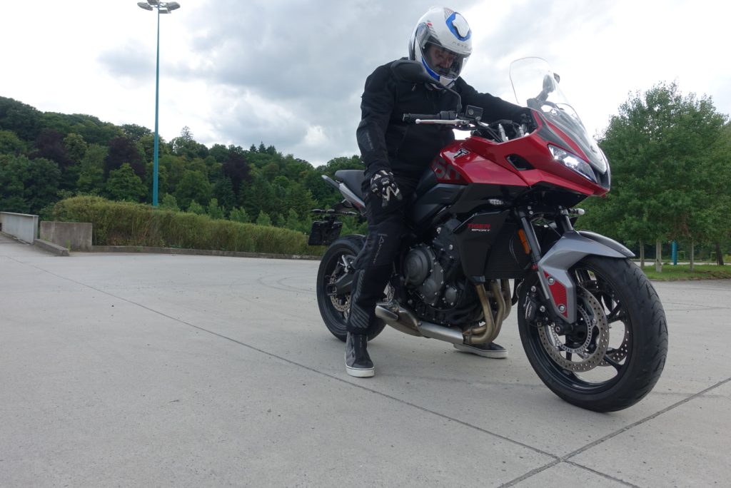Et encore, puisque même en jet, vos oreilles restent bien à l’abri et on peut rouler avec la mentonnière relevée. Alors forcément, si vous comparez avec les 180° comme ceux qu’on vous a montré cette saison, celui-ci pivote à 90° et la prise au vent est sensible. Au delà des 80 km/h, on commence à le sentir et avec 10 de plus, on va préférer le fermer à moins d’être sur une moto avec une excellente protection. Evidemment, il faut descendre l’écran solaire, à moins de rouler avec des lunettes. Il descend juste assez pour rouler à ces vitesses mais ici aussi, en augmentant le rythme l’air va finir par passer en-dessous. La commande juste au dessus du point de pivot n’est pas la plus simple à trouver, il faudra un peu de pratique pour la choper facilement.