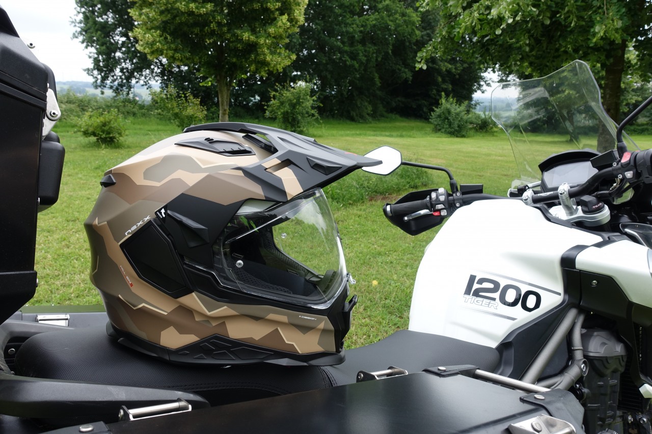 Du coup, j’ai testé en la retirant et là, la différence est flagrante, le casque se montre déjà bien moins bruyant et en plus, il n’a plus aucune prise au vent. Franchement, je le préfère largement comme ça et en plus dans cette déco Hill End Sand, il en jette, même sur un roadster ou une sportive. Si vous aimez vous faire remarquer, vous ne passerez pas inaperçu avec ce casque.