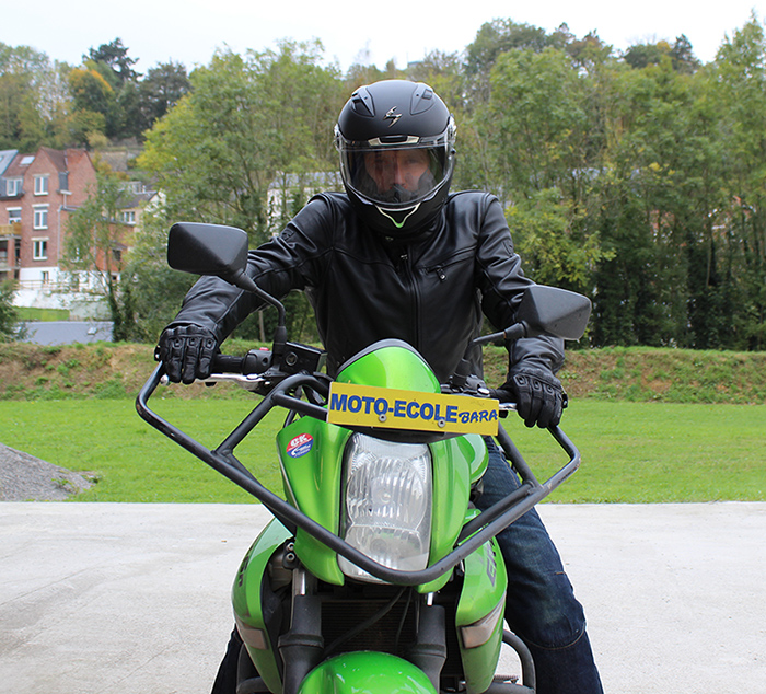 Avant de m’attaquer au passage du permis, une prise de contact avec la « bête » me semblait être une bonne idée. N’ayant jamais enfourché de moto de ma vie, entre tout ce que je croyais connaitre, ce que j’ai lu sur la toile et un peu partout ailleurs… il me semblait bien plus intelligent de remettre les compteurs à zéro, afin d’avoir une base solide, un enseignement fondé par une personne vraiment qualifiée. C’est pourquoi mon intérêt c’est porté sur la journée d’initiation à la moto organisée par la Belgium Driving School (en association avec la moto-écoleBarra)