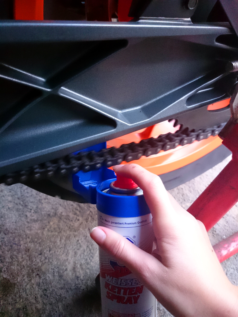 Graisse blanche pour chaîne (14€25, spray de 300ml; existe aussi en 400ml à 17€28 chez RAD)