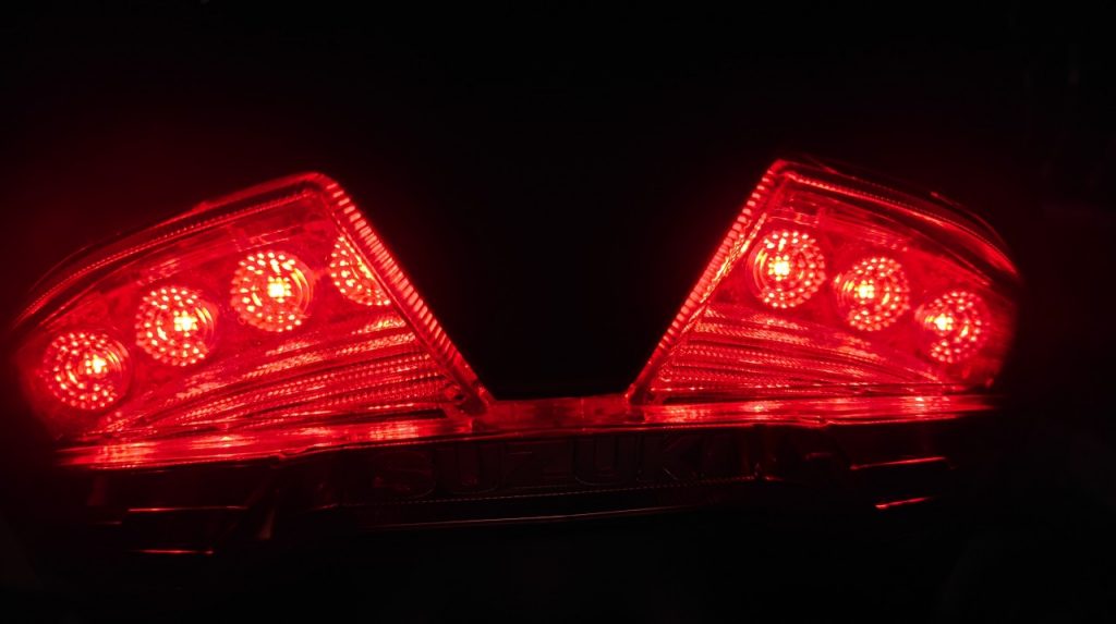 Et c’est là qu’intervient bien à propos le Traction Control non réglable –inutile avec 31cv !- mais déconnectable : il fait son office tout en douceur en interrompant l’allumage et on ne le remarque que par le clignotement du voyant dédié sur l’instrumentation. Pour stopper ce pétillant Burgman, les trois disques retenus suffisent largement ; leur puissance ne vous surprendra pas, mais leur feeling est excellent et l’ABS reste toujours discret, comme il se doit. Les noctambules apprécieront un éclairage LED puissant qui offre la particularité de bien éclairer les bas-côtés de la route, chose toujours appréciable en courbe. Notons que les clignotants restent, quant à eux, équipés d’ampoules classiques. S’agissant de confort, pilote et passager n’ont aucunement à s’en plaindre : la selle est moelleuse (un peu glissante pour le conducteur) et les suspensions s’acquittent honorablement de leur tâche, avec là aussi une mention spéciale au combiné arrière réglable en précontrainte sur 7 niveaux.