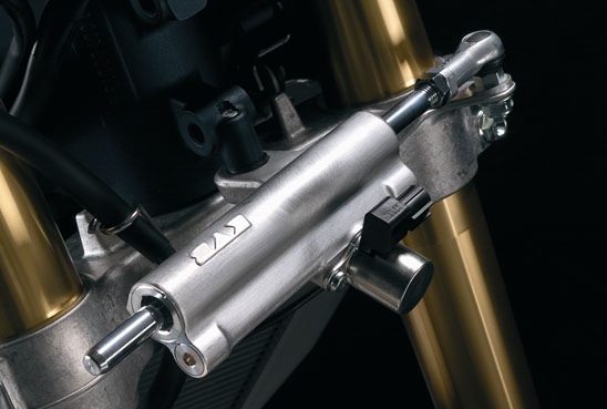 Autre grosse nouveauté, l’adoption à l’avant d’étriers monobloc signés Brembo mordant des disques flottants, comme en GP. Ces étriers sont plus légers et plus rigides, ils doivent apporter au pilote plus de puissance, plus de stabilité et un meilleur ressenti au levier. A l’usage, nous ne sommes qu’à-demi conquis car, si la puissance et la fluidité de la décélération sont incontestables, nous déplorons le manque de mordant à l’attaque du levier . de sorte que le feeling n’est optimal qu’après un assez long temps d’adaptation.