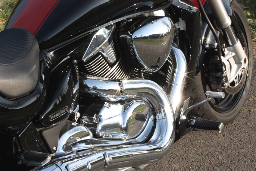 Sans doute est-il (plus que) temps d’en venir à ce qui constitue tout de même la quintessence de la M1800R, son moteur. Au fond, vous n’en connaissez jusqu’ici que sa sonorité puissamment agréable et son manque de souplesse amplifié par le couple et la taille des pistons. Mais fort heureusement, la personnalité mécanique de la Suzuki ne s’arrête pas là.