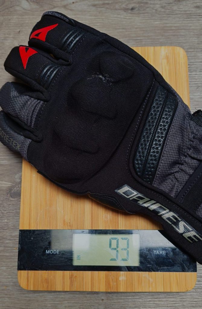 Le poids plume et les doigts préformés font que les Teyde se font complètement oublier lorsque vous les portez et, comme leur matériau textile est extensible dans les 4 directions (haut, bas, gauche et droite), vous avez la garantie que les gants s’adaptent finement à votre morphologie et à vos mouvements. Dans ces conditions, le confort est une qualité cardinale de ces gants Dainese. Avec du Gore-Tex, l’étanchéité va évidemment de soi et on soulignera que, bien que les Teyde ne disposent d’aucun isolant thermique, les matériaux retenus isolent plutôt bien les mains du surcroît de froid engendré par la pluie.
