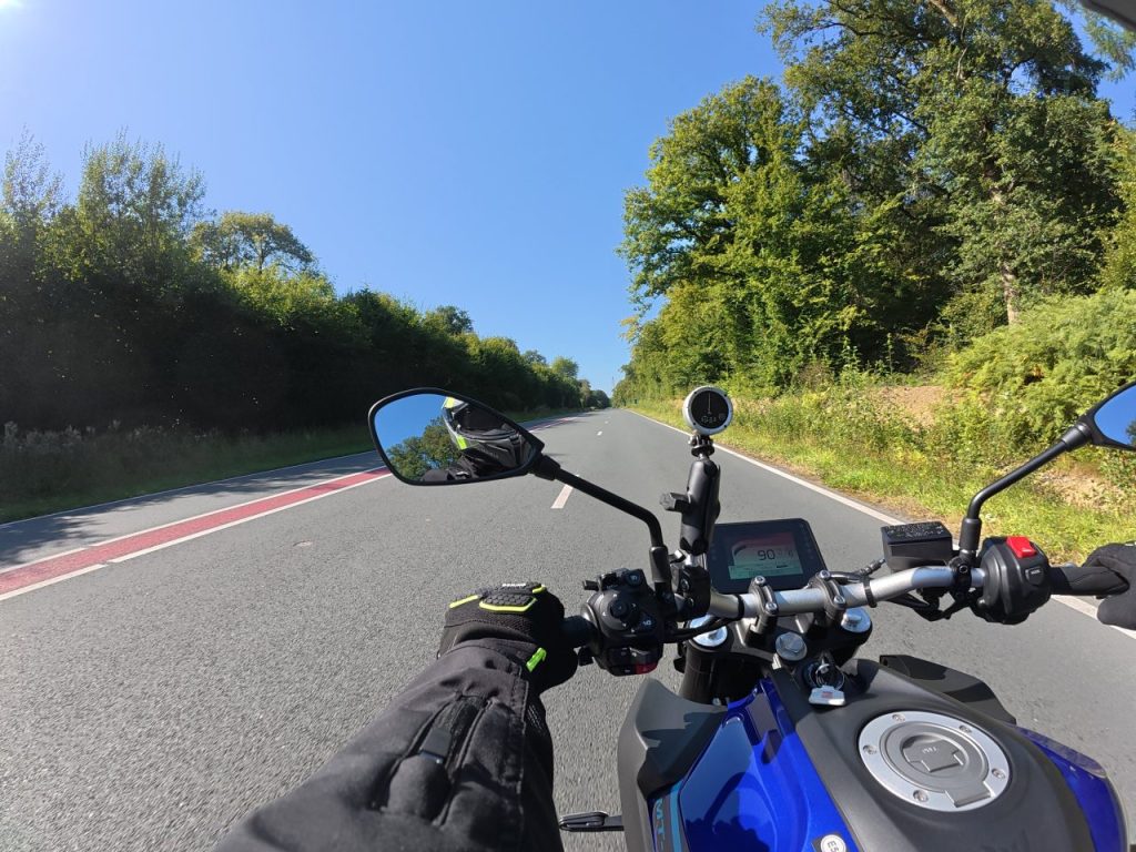 Là où je reste un peu sur ma faim c’est que cette légèreté impose aussi un petit réservoir d’à peine 14 litres et même si les consommations des motos modernes sont en amélioration, on aura vite épuisé son contenu. Enfin, j’ai quand même pu faire 240 kms en ne remettant que 10 litres. Gageons que 250 kms, c’est déjà pas mal pour un roadster qui forcément n’offre aucune protection. La selle est assez accueillante mais on n’en demandera pas plus.