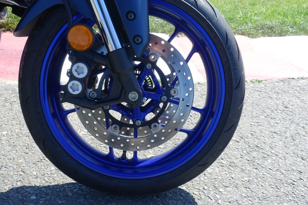 Et comme Yamaha sait que vous allez sans doute abuser un peu, beaucoup, passionnément de votre moto, mieux vaut lui conférer un freinage à la hauteur avec deux disques de 298 mm avec des étriers radiaux à 4 pistons et un 245mm à l’arrière. Ca freine bien et il sera bien difficile de prendre votre équipement en défaut.