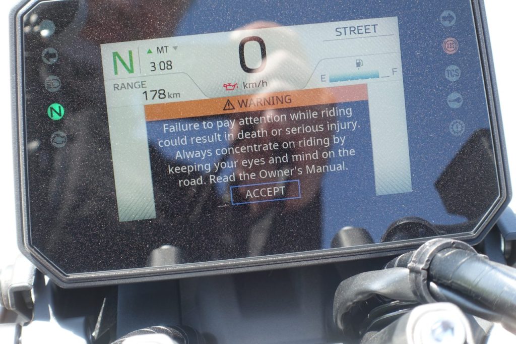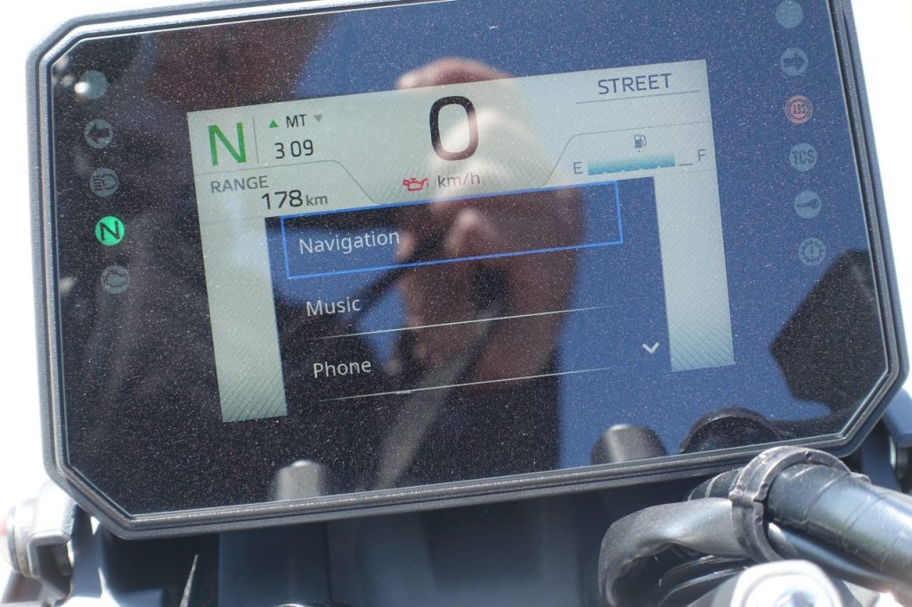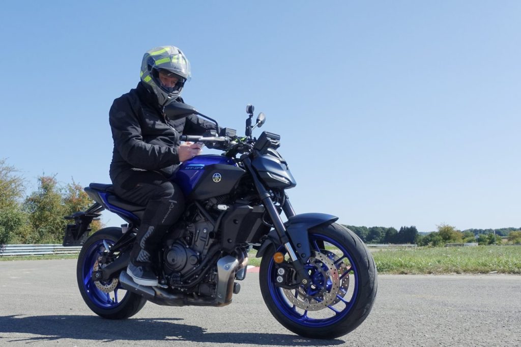 Avec tout ça, on oublierait presque que ce ne sont pas les seules améliorations de cette moto puisque la MT-07 gagne aussi des nouveaux commodos avec un arrêt automatique des clignotants et même un clignotement du feu arrière en cas de freinage d’urgence. Vous avez aussi un écran TFT de 5 pouces que vous pouvez connecter à votre GSM et avec l’application Garmin StreetCross, vous pouvez même avoir la navigation virage par virage. J’avoue ne pas l’avoir testée. Je pourrais même mon téléphone devrait avoir toutes les applications de toutes les marques et vu que certaines ont la mauvaise idée de devenir payantes, ça risque de me coute cher si j’oublie de les retirer à temps. Promis, je ferai un effort l’année prochaine et à vrai dire, je pensais le faire pour le deuxième essai mais le planning en a décidé autrement.