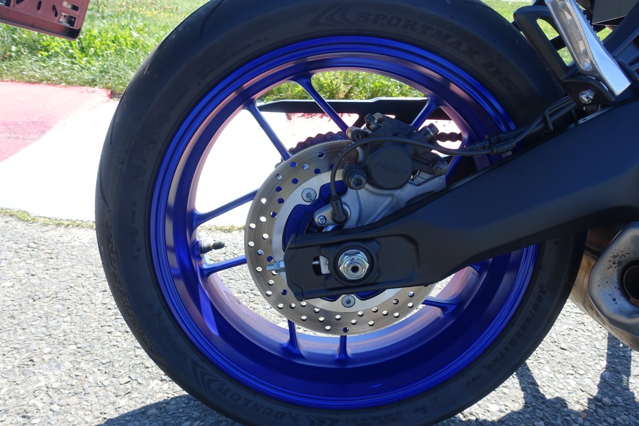 Et comme Yamaha sait que vous allez sans doute abuser un peu, beaucoup, passionnément de votre moto, mieux vaut lui conférer un freinage à la hauteur avec deux disques de 298 mm avec des étriers radiaux à 4 pistons et un 245mm à l’arrière. Ca freine bien et il sera bien difficile de prendre votre équipement en défaut.