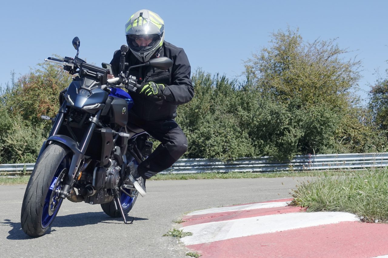 Embourgeoisée la MT-07 ? Non mieux équipée mais toujours aussi joueuse avec une bonne partie cycle. A l’avant, une fourche inversée de 41 mm et un mono-amortisseur réglable en précharge et détente. Les Dunlop Sportmax Q5A sur les jantes Spinforged lui confère toujours une maniabilité diabolique. Elle se pliera à toutes vos folies (ou presque) et se montrera vraiment efficace et facile à placer en courbe. Vu son poids plume et son agilité, enchainer les virolos est un exercice qui vous filera la banane.