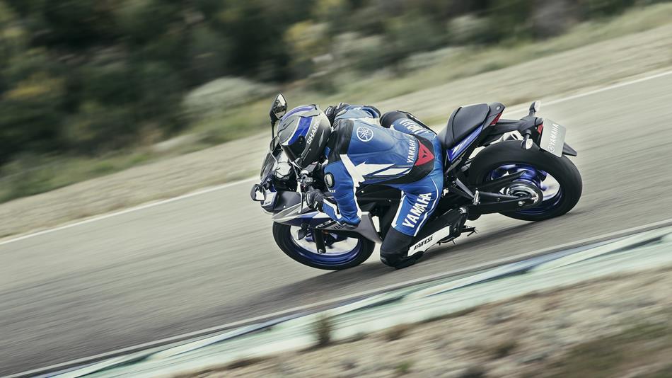 Dès qu’on s’installe aux commandes de cette petite moto, on s’aperçoit que l’ingénierie Yamaha n’a pas conçu une YZF au rabais car l’ergonomie y est aussi soignée que la finition. Grâce à la selle plutôt basse (780mm) malgré un arrière surélevé, un pilote d’1m60 pose aisément ses pieds au sol tandis qu’un conducteur de grande taille n’éprouve pas plus de difficulté à y trouver ses marques. C’est que le triangle guidons (rehaussés et écartés), pose-pieds (idéalement situés) et sellerie (moelleuse et échancrée) définit une position de conduite plus relaxe que réellement sportive, laquelle n’interdit cependant pas une bonne lecture du revêtement routier. Quittant les locaux de l’importateur, la R3 vous met instantanément à l’aise et sa répartition des masses idéale (50/50) n’y est pas étrangère. Naturelle par essence, la Yamaha met en confiance aussi vite qu’elle dégaine sa cavalerie pour vous arracher à un rond-point, elle plonge à la corde avec une facilité déconcertante, accentuant par là ce côté racing que son agilité hors norme distille également avec brio dans les ralentissements et bouchons inhérents à la ville. Un outil et un jouet de premier ordre, en somme.